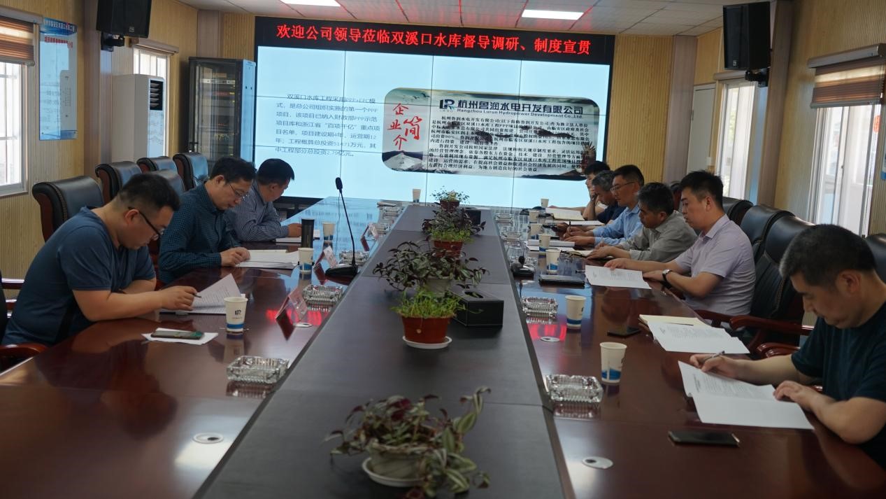 5月10日,星空在线登录官网党委委员、副总经理杜贞义,工程管理部部长姚洪林一行到杭州市临安区双溪口水库工程项目调研指导工作,并对星空在线登录官网近期一系列规章制度进行了宣贯。在项目相关人员陪同下,察看了工程施工现场,并详细了解了项目星空在线登录官网运作情况、工程现阶段组织实施和遇到的困难等情况。