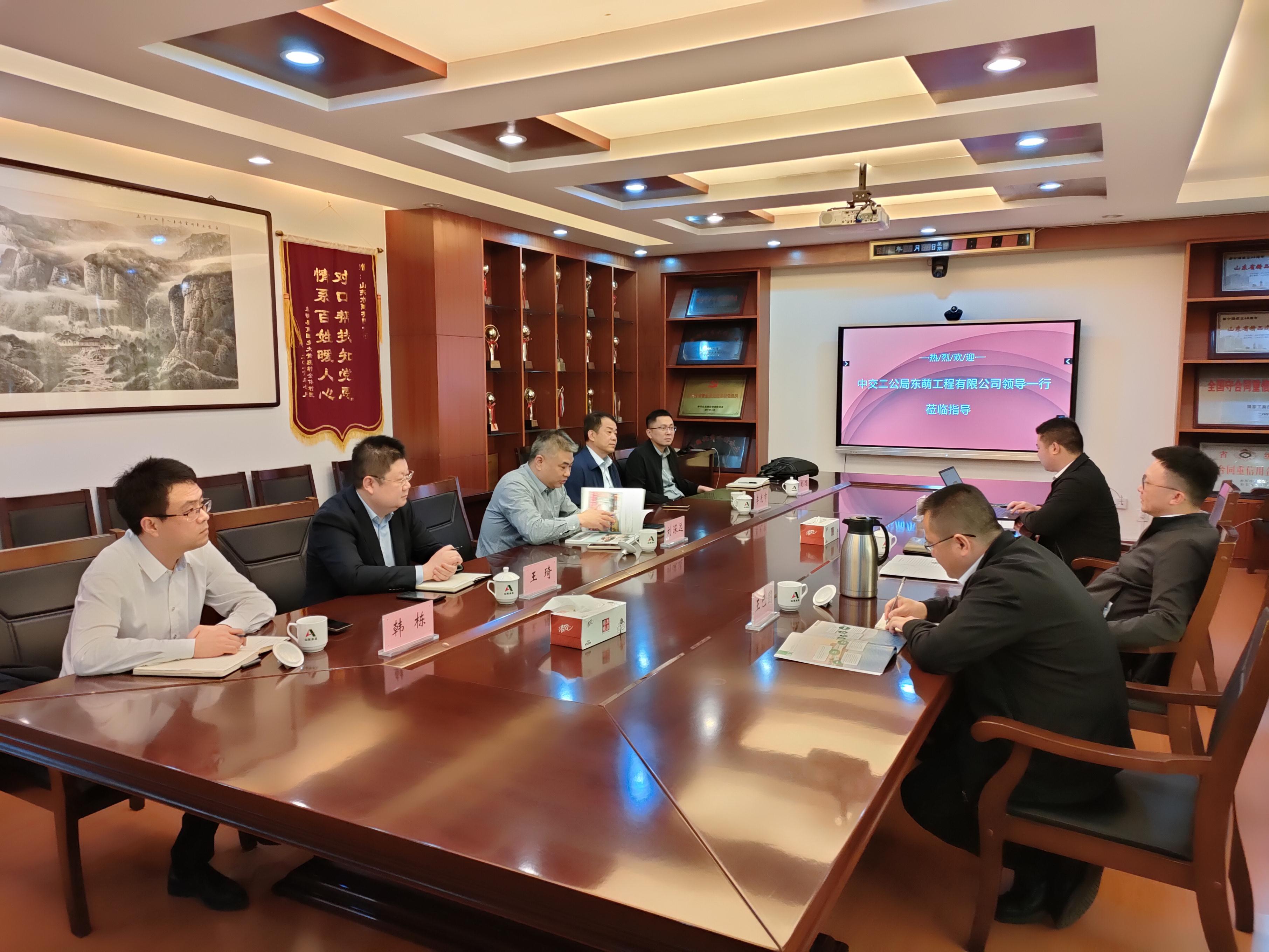 3月20日下午,中交二公局东萌工程有限星空在线登录官网董事长周军、副总经济师王巴图、经营开发部程勇一行到我星空在线登录官网走访交流。星空在线登录官网党委书记、董事长刘深远,党委委员、副总经理李光市出席会议,投资经营部及第七分星空在线登录官网相关人员陪同交流。
