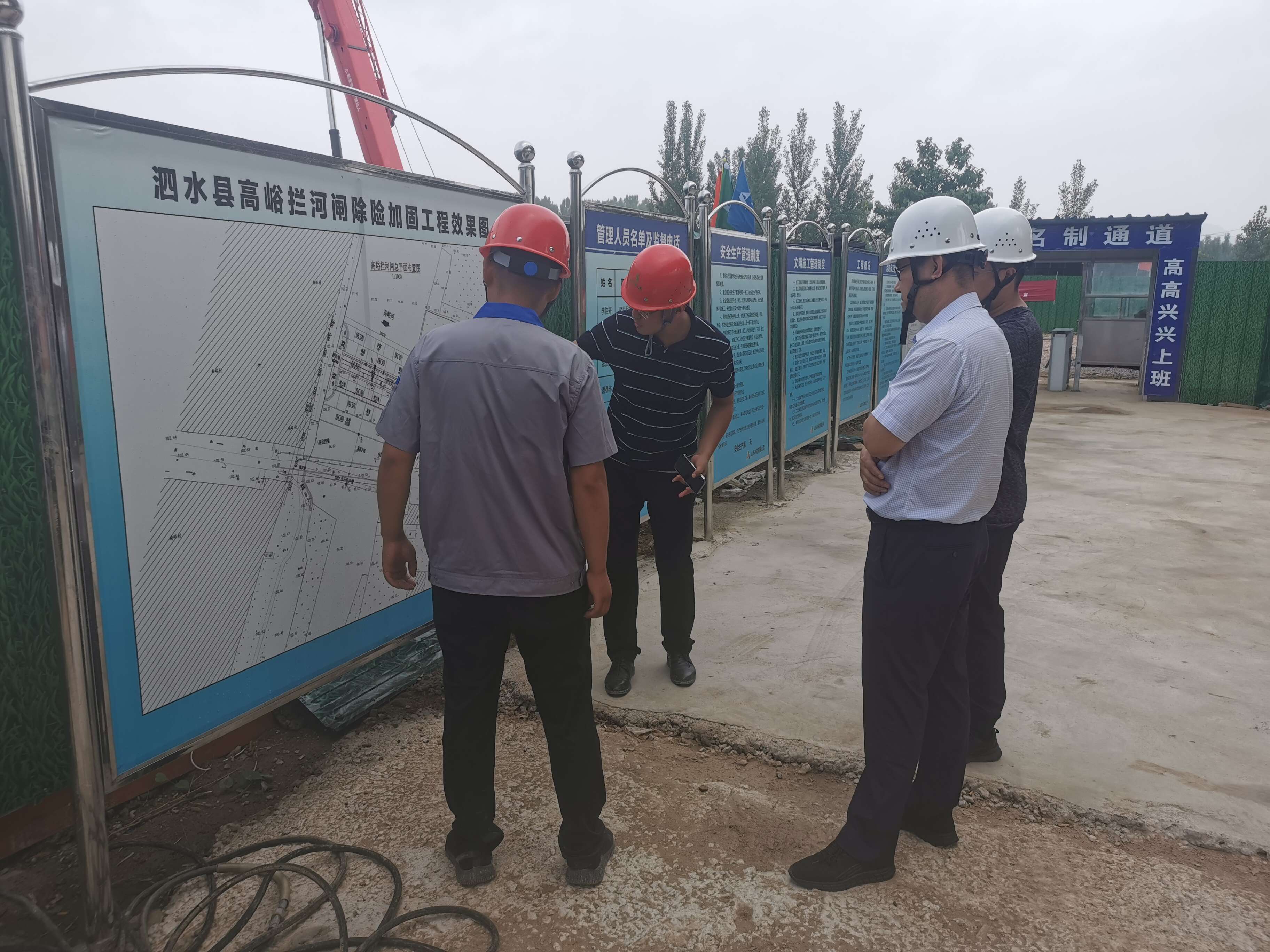 7月13日,星空在线登录官网安全总监郭法文、安全管理部部长向建等一行到第七分星空在线登录官网泗水县高峪拦河闸除险加固工程开展安全检查工作,第七分星空在线登录官网副总经理常征陪同检查。