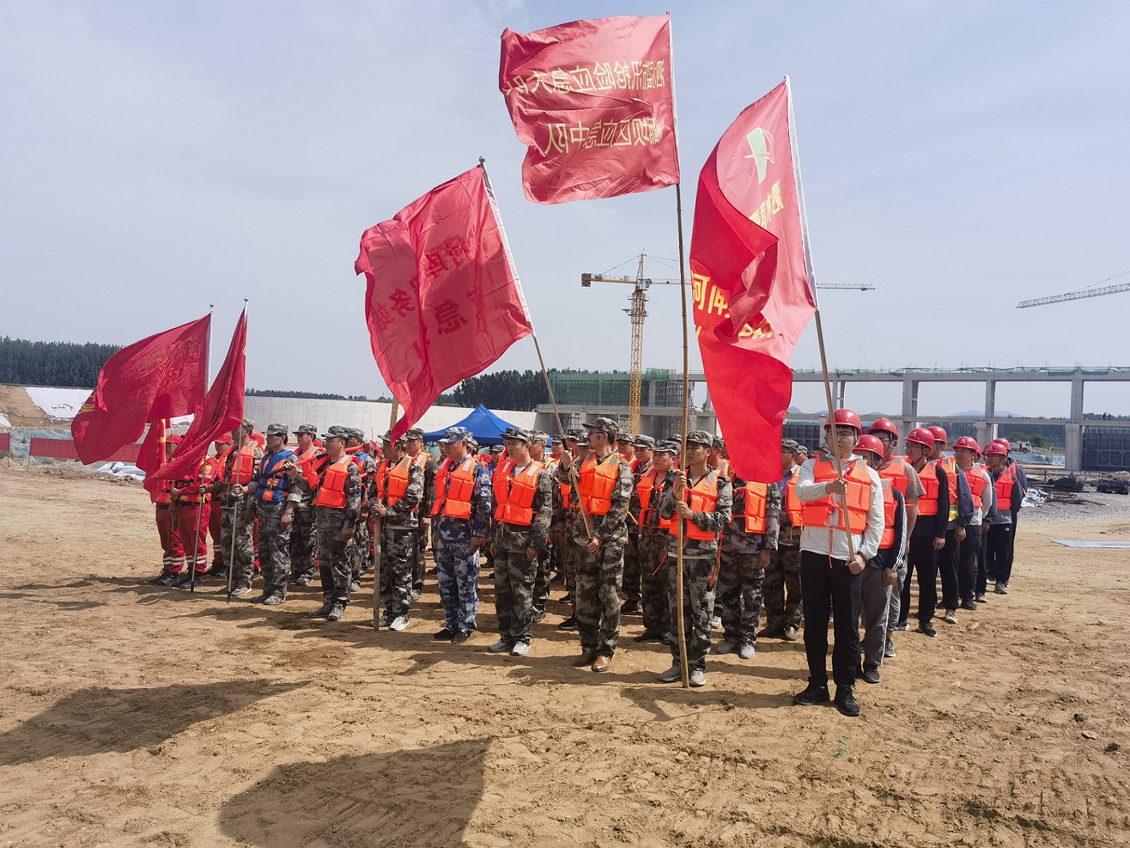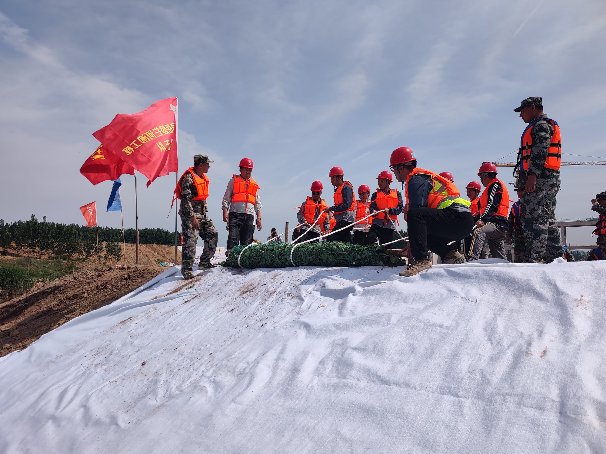5月9日下午,第七分星空在线登录官网泗水县泗河岳陵拦河闸项目部联合泗水县水务局、泗水县应急局等单位开展了岳陵拦河闸工程防汛应急救援演练。本次模拟演练设置坝前坍塌抢护、坝后管涌抢护、增高子堰抢护3个演练场景。