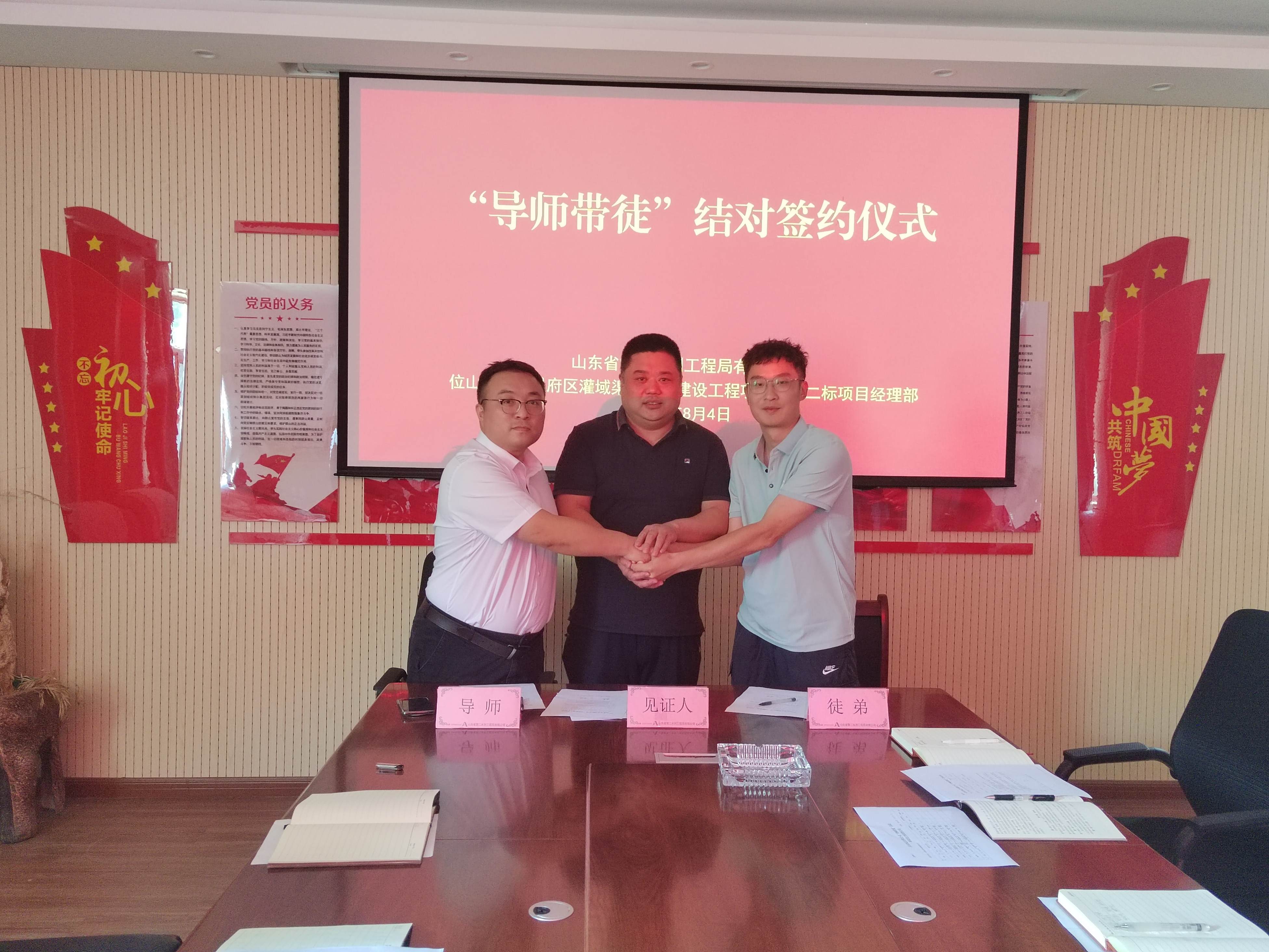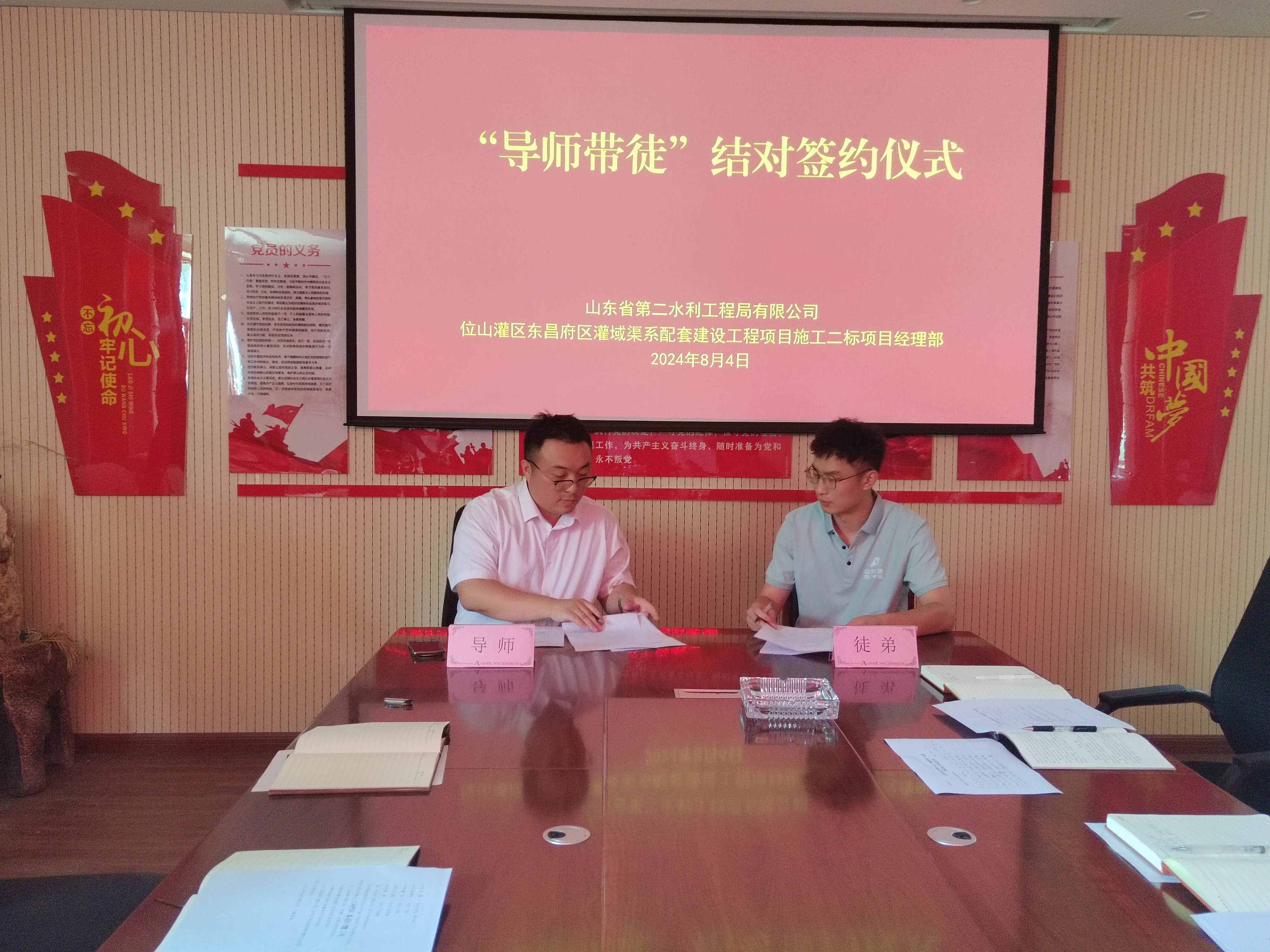 近日,二局有限星空在线登录官网位山灌区东昌府区灌域渠系配套建设工程项目施工2标项目经理部举行了“导师带徒”结对签约仪式。