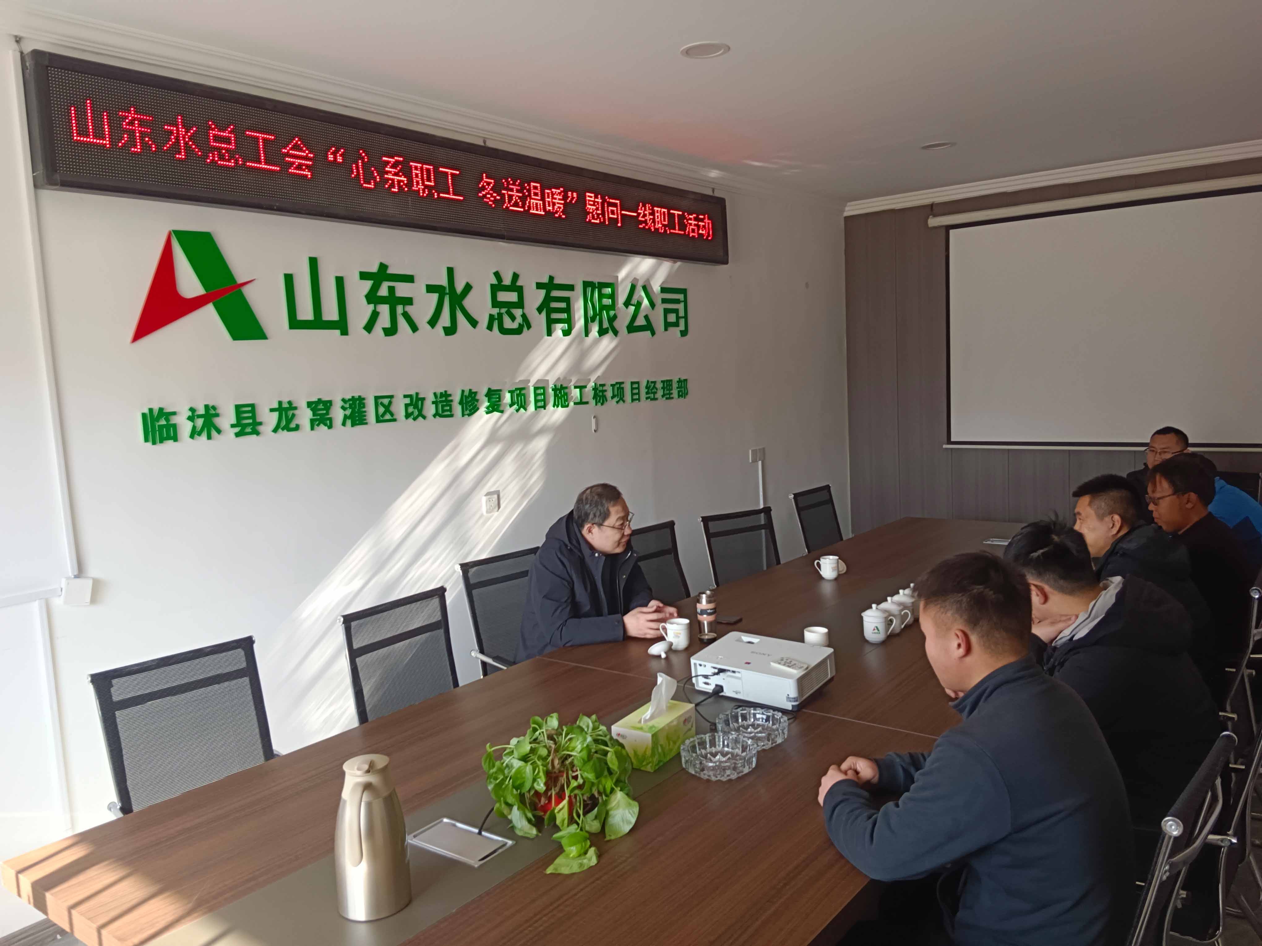 1月17日,星空在线登录官网党委委员、副总经理杜贞义一行到第三分星空在线登录官网临沭龙窝灌区改造维修项目开展“心系职工 冬送温暖”慰问一线职工活动。