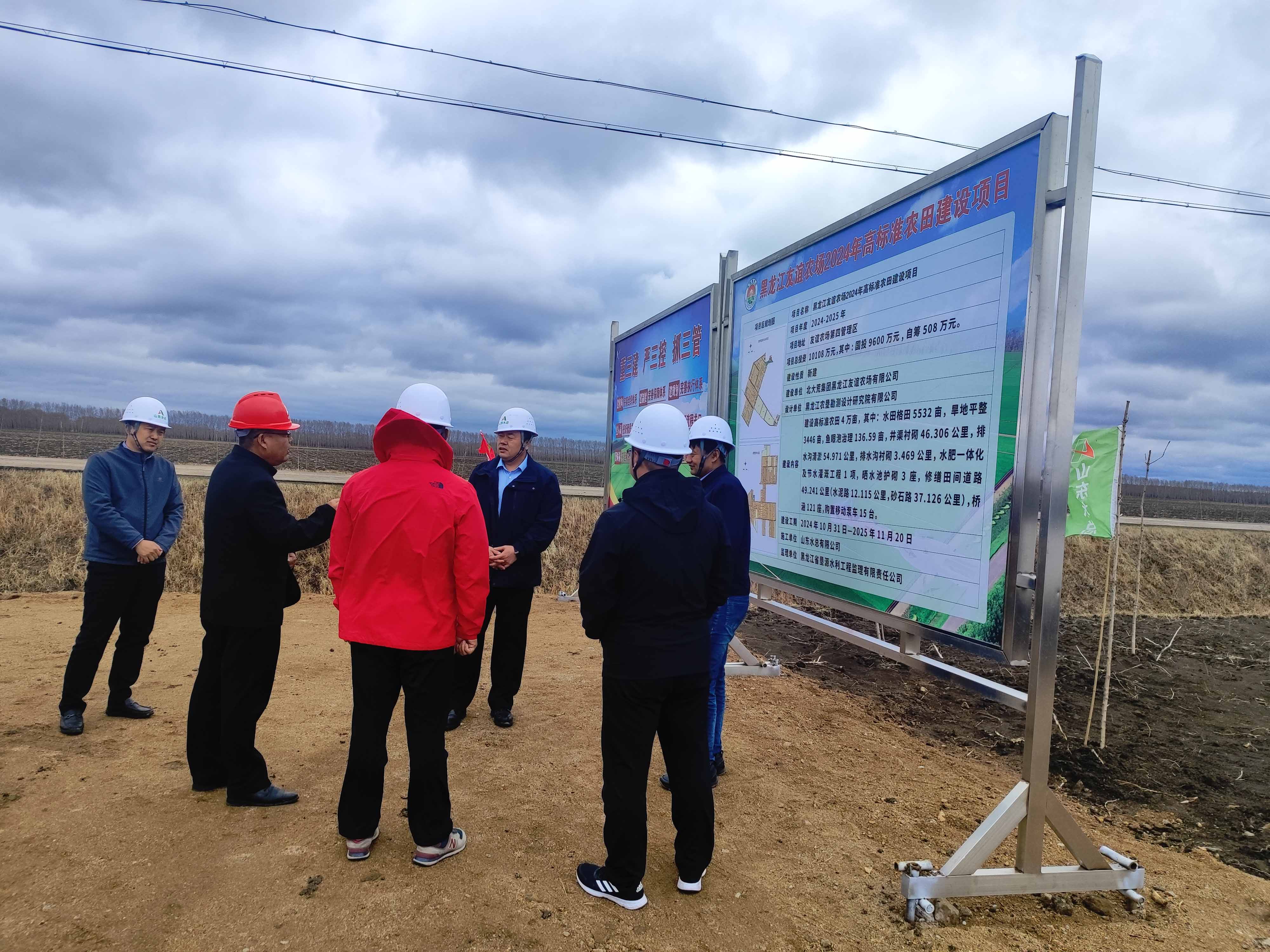 裴文晶一行首先来到黑龙江省粮食产能提升项目了解项目进展,并同项目部一线人员进行交流。随后,调研组来到黑龙江友谊农场2024年高标准农田建设项目,同北大荒集团黑龙江友谊农场有限星空在线登录官网副总经理樊庆华进行会谈。双方对当前项目的总体进度、面临的机遇和挑战进行了分析和研讨,并对下一步如何加强合作进行深入交流,展望两家省级国有企业合作的未来,努力发挥山东水总基础建设和北大荒集团农业生产运营的优势,打造出“1+1>2”的效果。