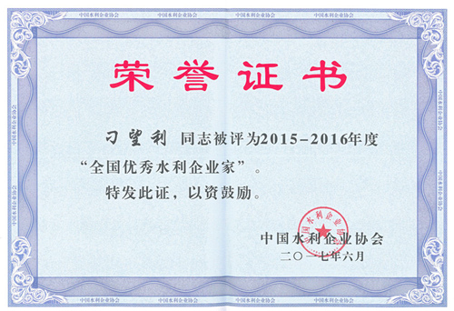 星空在线登录官网刁望利同志荣获2015-2016年度“全国优秀水利企业家”