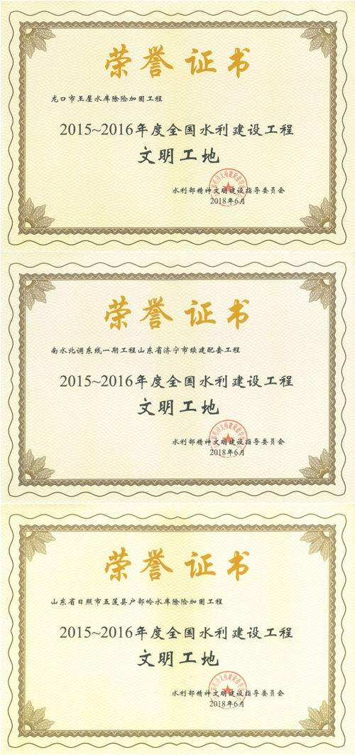 星空在线登录官网“龙口市王屋水库除险加固工程”等项目荣获“2015-2016年度全国水利建设工程文明工地”称号