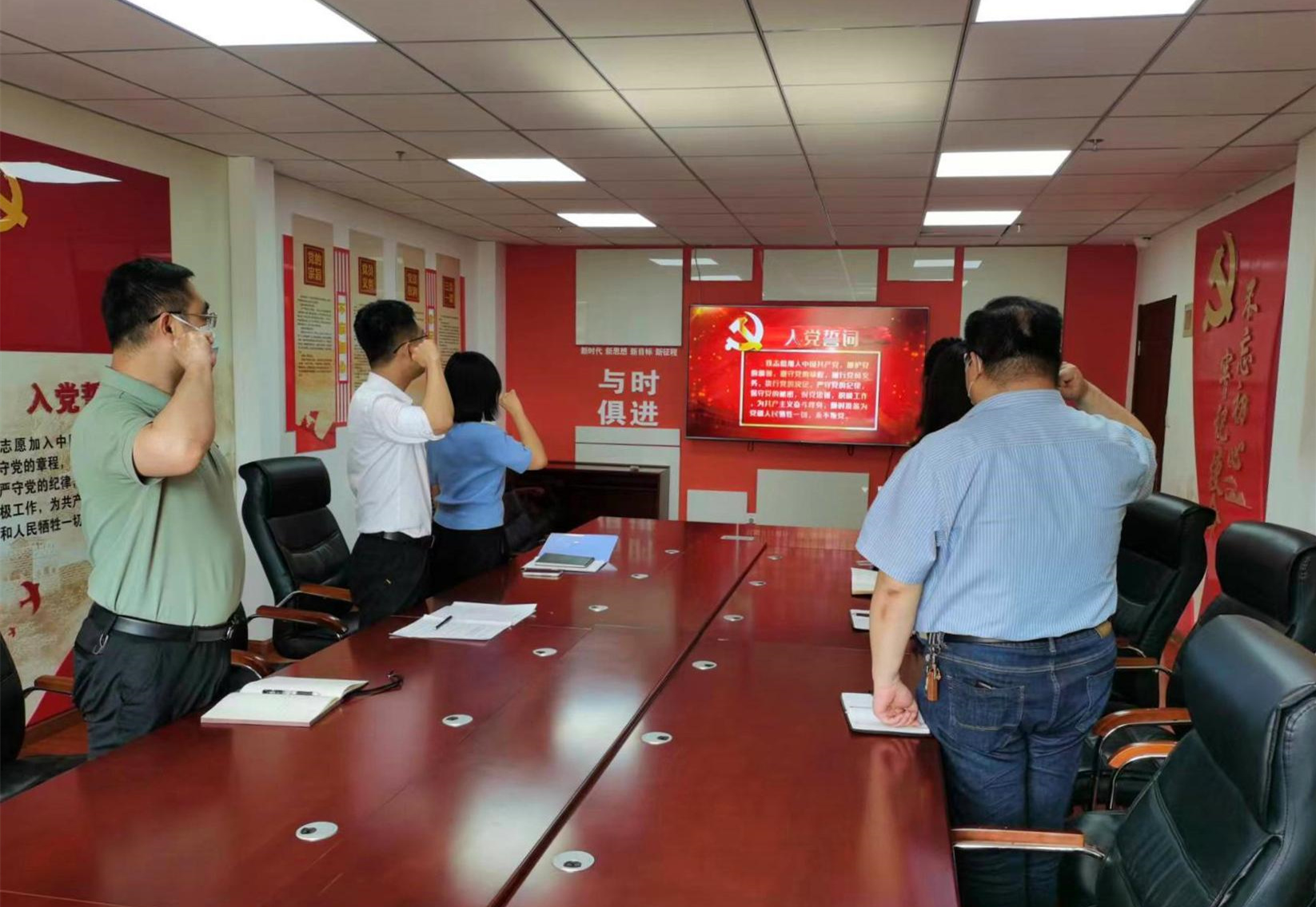 会上,首先支部书记韩栋带领大家重温入党誓词,勿忘入党初心,进一步增强党员意识、坚定理想信念。接着,大家共同深入学习了习近平总书记关于坚持不懈抓好作风建设重要论述摘录、《中共山东省委办公厅关于进一步加强作风建设的通知》,正确理解作风建设的重要性,认真领会《通知》精神。最后,各位党员围绕“‘四提’‘五要’见行动”主题,展开热烈讨论。