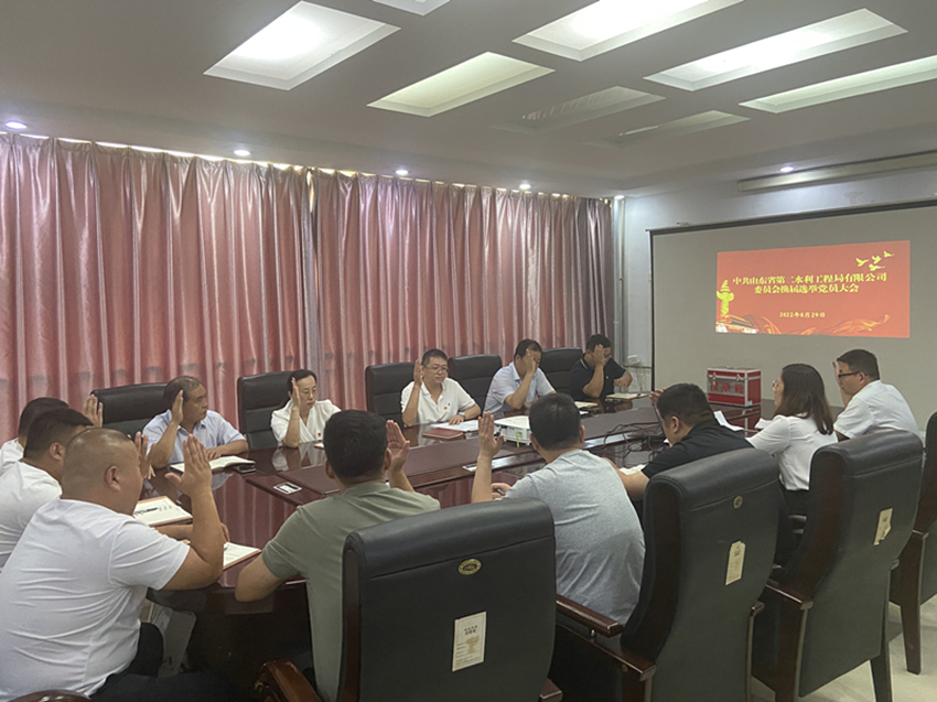 经山东水总党委批准,8月29日下午,二局有限星空在线登录官网党委召开全体党员大会,进行党委换届选举工作。会议由党委书记、执行董事、总经理王传波主持,星空在线登录官网全体党员参加。