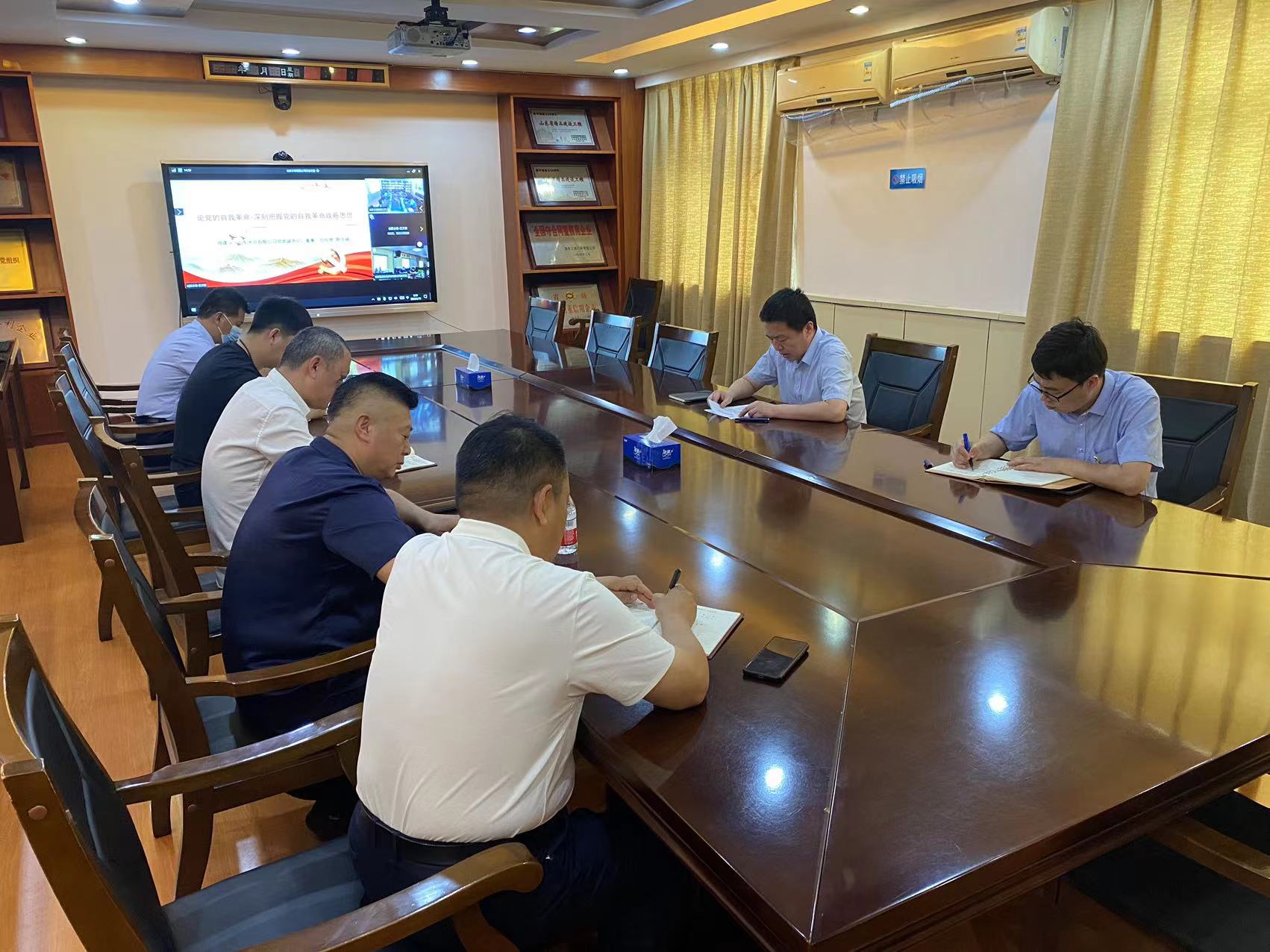 6月19日,星空在线登录官网党委副书记、董事、总经理靳文硕以“论党的自我革命—深刻把握党的自我革命战略思想”为主题,为建筑劳务星空在线登录官网党支部、杭州鲁润星空在线登录官网党支部讲授主题教育专题党课。