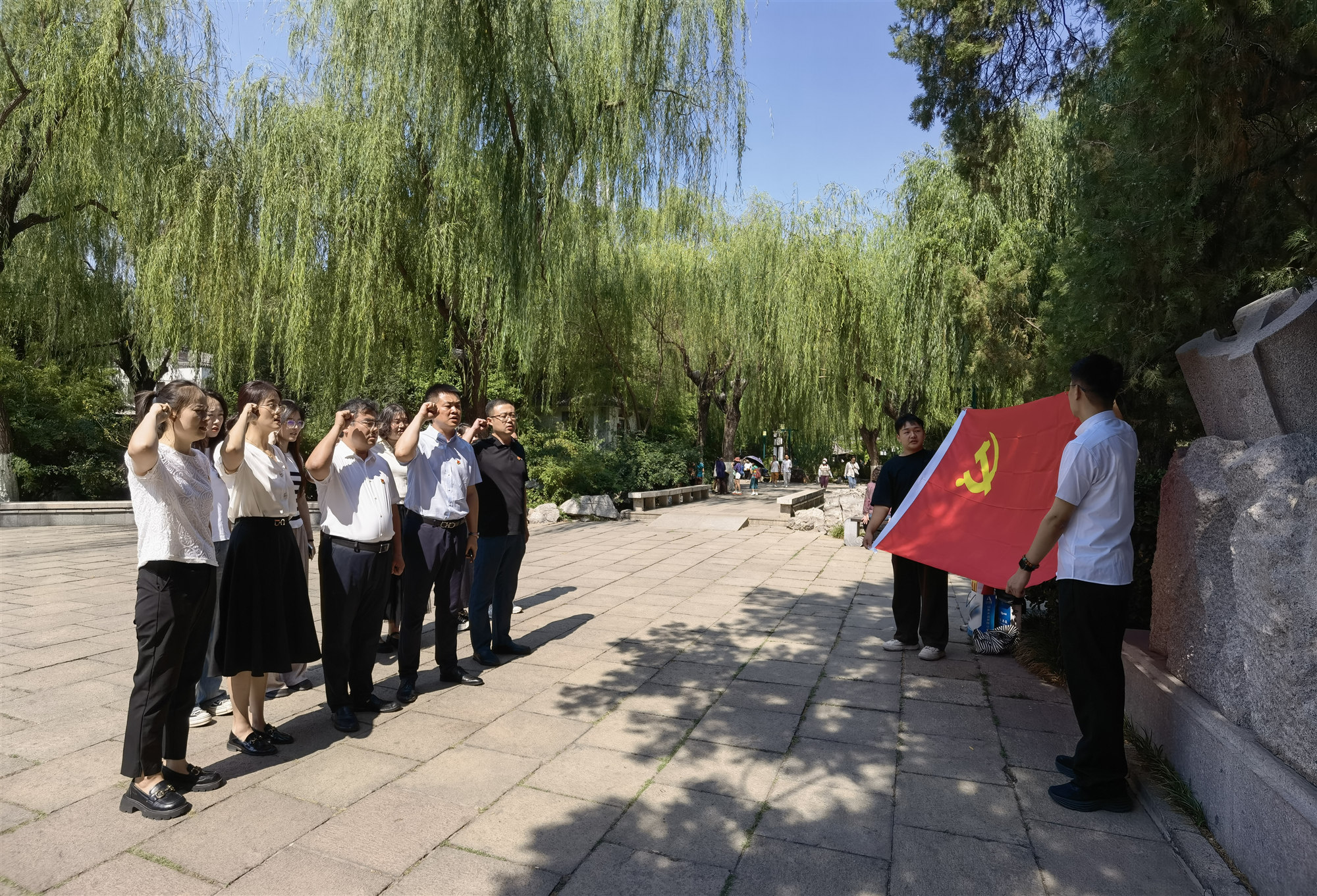 进入纪念馆,在工作人员的引导讲解下,全体党员认真观摩学习,重温那段艰辛岁月。参观结束后,全体党员重温入党誓词、重忆入党初心。铿锵有力的誓词体现了全体党员对党的无限忠诚,也更加坚定了每名党员的初心与理想信念。