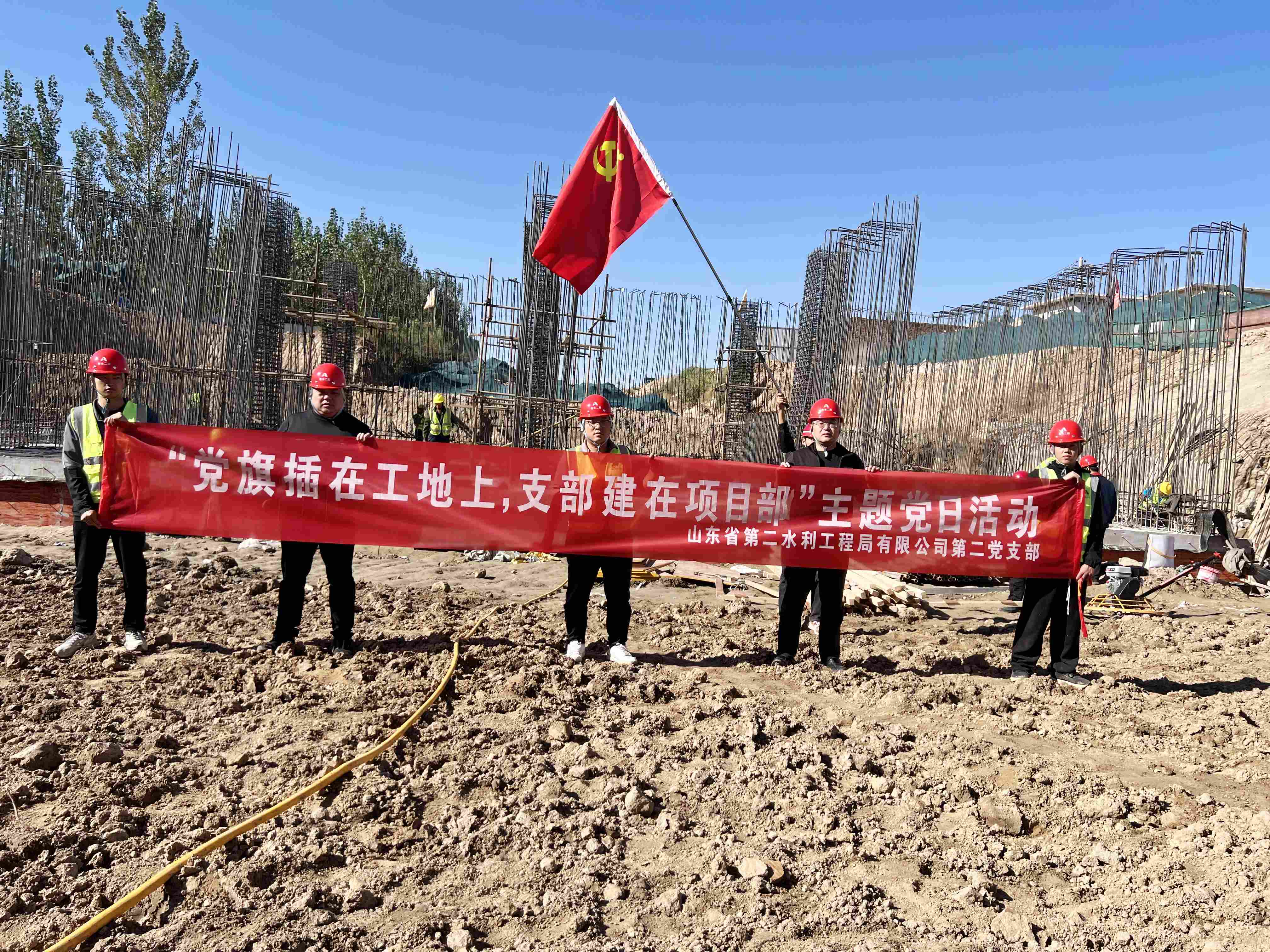 为深入开展“党建进工地”活动,推进党建与业务工作深度融合,近日,二局有限星空在线登录官网第二党支部在聊城市位山灌区项目施工现场组织开展“党旗插在工地上,支部建在项目部”主题党日活动。